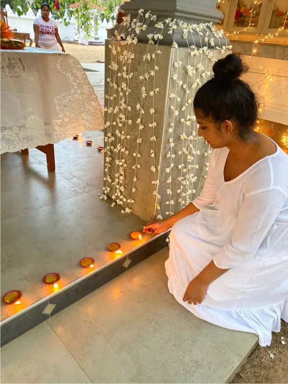 On poya days, we both collect the money we have, go out and offer it to who are in need. Coming back home empty handed is our Poya Day mission . The practice of giving gives us immeasurable pleasure and happiness.